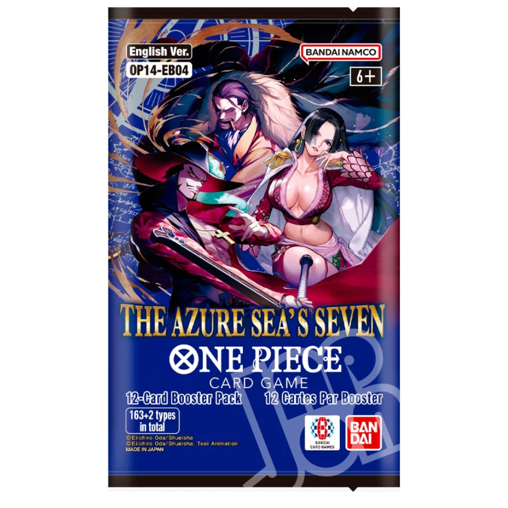 Utforska den legendariska världen av One Piece med One Piece The Azure Sea's Seven (OP 14) – ett måste för alla fans av De Sju Krigsherrarna (Warlords of the Sea)! Detta set fokuserar på några av de mest ikoniska karaktärerna i serien och bjuder på kraftfulla nya kort, strategier och illustrationer.