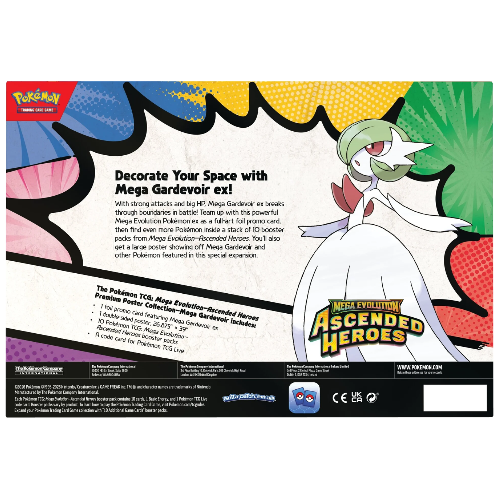Följ med in i den nya Mega Evolution-eran med denna exklusiva Ascended Heroes Premium Poster Collection, centrerad kring den eleganta och kraftfulla Mega Gardevoir ex. Med höga HP-värden, explosiva attacker och ikonisk design är Mega Gardevoir ex ett av de mest eftertraktade Mega Evolution-korten i hela expansionen.