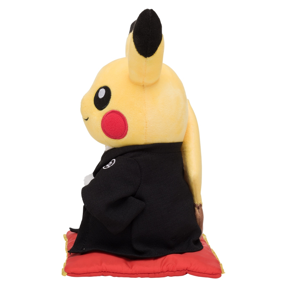 Pikachu bär en klassisk svart hakama med kammärket broderat – en hyllning till traditionella japanska bröllop.