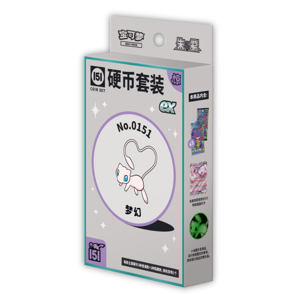 Ett samlarmynt i Pokémon-tema medföljer – tillgängligt i tre vanliga färger baserat på typ (Gräs, Psyke, Mörker) samt en hemlig version med exklusiv finish.
