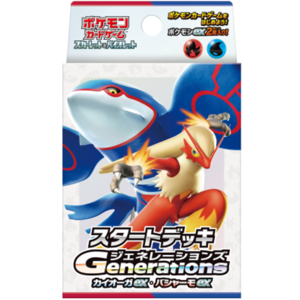 Pokémon ex Starter Deck Kyogre ex & Blaziken ex erbjuder en kraftfull kombination av vatten- och eldattacker. Kyogre ex levererar massiv skada och kan byta ut motståndarens Pokémon, medan Blaziken ex återställer energi till ditt lag med sin förmåga Overflowing Spirit.