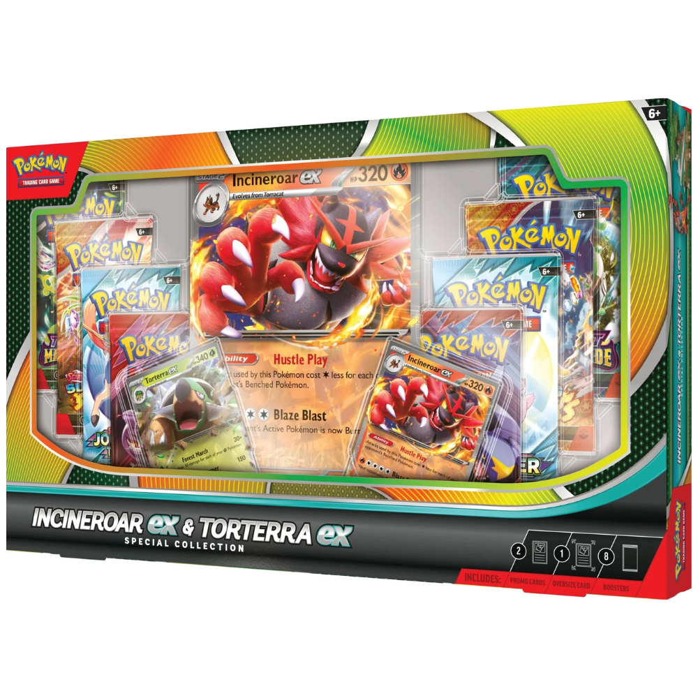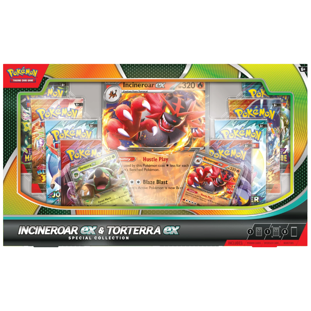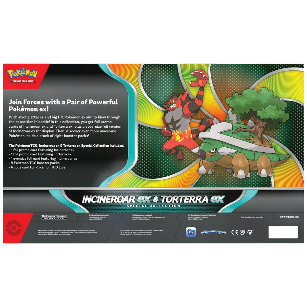 Två kraftfulla Pokémon ex i en episk samlarbox! Få både den eldsprutande Incineroar ex och den jordskakande Torterra ex – redo att förstärka din lek och din samling från Scarlet & Violet-serien.