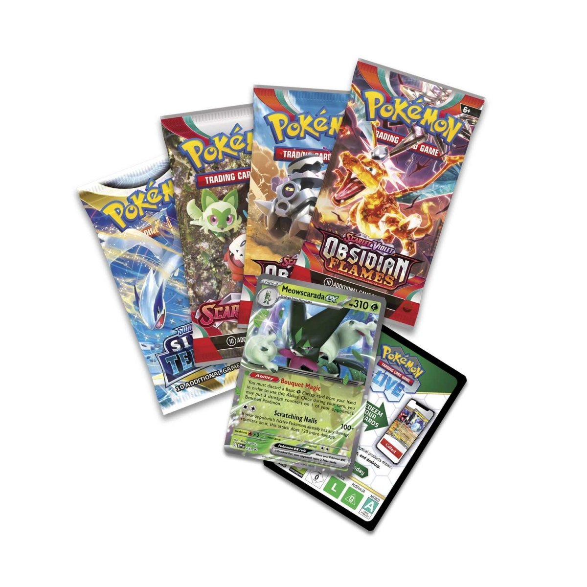 Innehåll i Pokémon Paldea Partners Tin - Meowscarada ex: