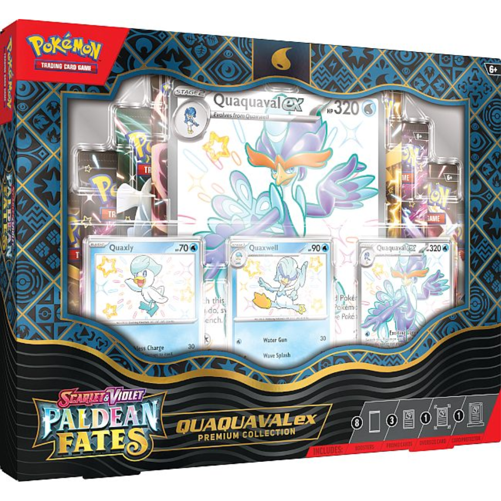 Gör dig redo för de största striderna med Pokémon Scarlet & Violet: Paldean Fates (Quaquaval ex) Premium Collection! Denna samling erbjuder 8 booster packs fyllda med nya kort att lägga till din samling. Med ett exklusivt Quaquaval ex-promokort, plus två andra promokort, får du tillgång till kraftfulla kort och strategiska fördelar. Den medföljande One-Touch-ramen hjälper till att skydda och visa upp dina mest sällsynta kort, och det stora kortet ger ännu ett mervärde till din samling.