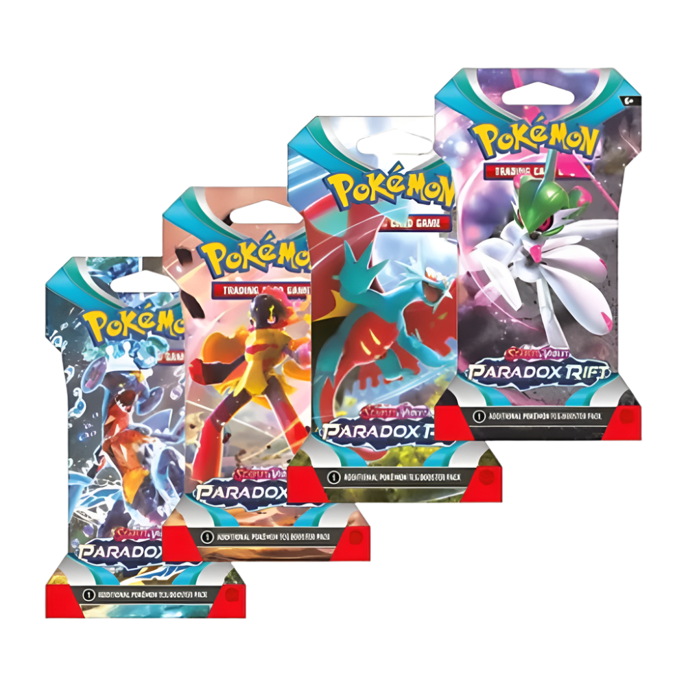 I expansionen Paradox Rift kolliderar tidslinjer när forntida och framtida Pokémon dyker upp i en värld utan tidsgränser. Samla kraftfulla kort som Roaring Moon ex, Iron Valiant ex, Garchomp ex och Mewtwo ex i deras Terastal-former!