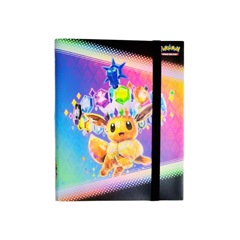 Den Eevee Prismatic Evolutions Collector Binder är en färgglad samlarmapp som pryds av karaktären Eevee från Pokémon. Perfekt för att förvara och visa dina kort från Evolutions-setet. Mappen är utformad för att rymma upp till 360 kort och erbjuder en praktisk och snygg lösning för samlare.