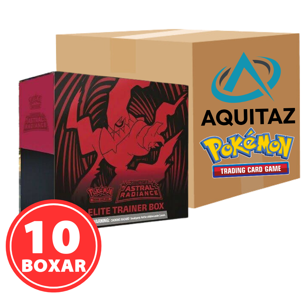 Upplev spänningen med ett Pokémon Sword & Shield: Astral Radiance Elite Trainer Box (ETB) Sealed Case! Detta exklusiva fall innehåller 10 Elite Trainer Boxes, vilket ger dig ett omfattande urval av Astral Radiance booster packs och samlartillbehör.