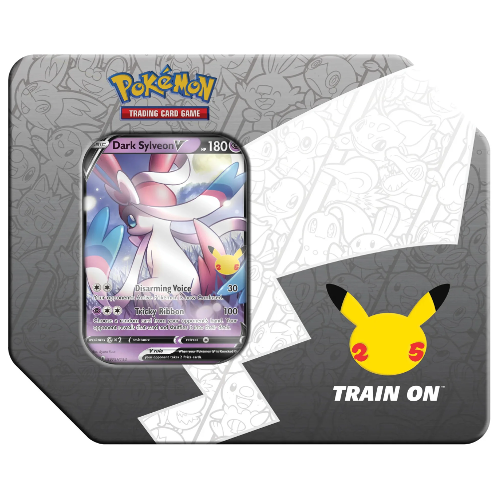 Fira 25 år av Pokémon med en unik twist på ett älskat Pokémon V-kort. Dark Sylveon V tar med sig en oväntat hotfull energi till denna exklusiva Celebrations Big Tin – fylld med specialboosters och spännande samlarkort.