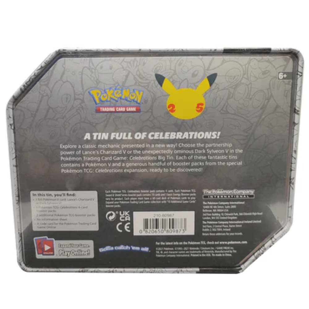 Utforska kraften i klassiska Pokémon i ny tappning med Lance’s Charizard V! Denna exklusiva Celebrations Big Tin är en del av Pokémon TCG:s 25-årsjubileum och innehåller både Celebrations boosters och extra Pokémon TCG-paket – perfekt för samlare och spelare.