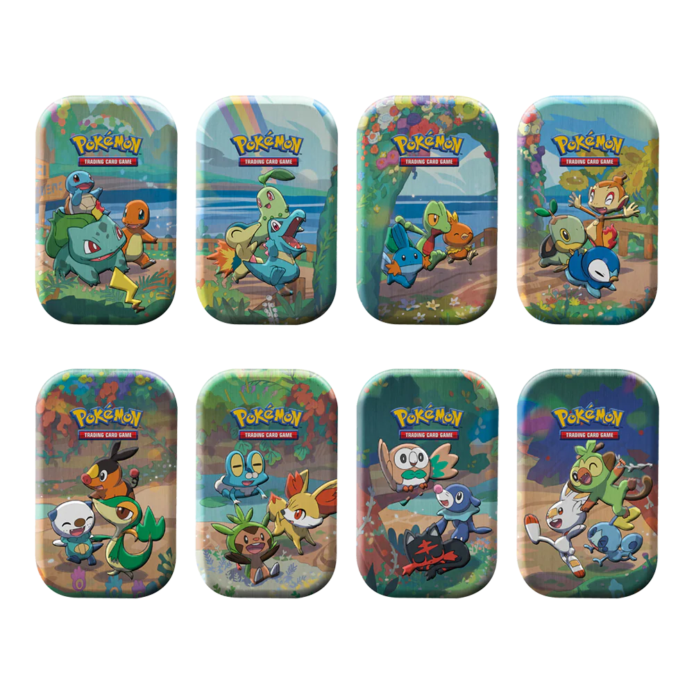 Ta med dig nostalgin överallt med Pokémon Celebrations Mini Tins! Dessa smidiga små burkar innehåller ikoniska Första Partner-Pokémon från alla åtta generationer och är perfekt för samlare och spelare på språng.