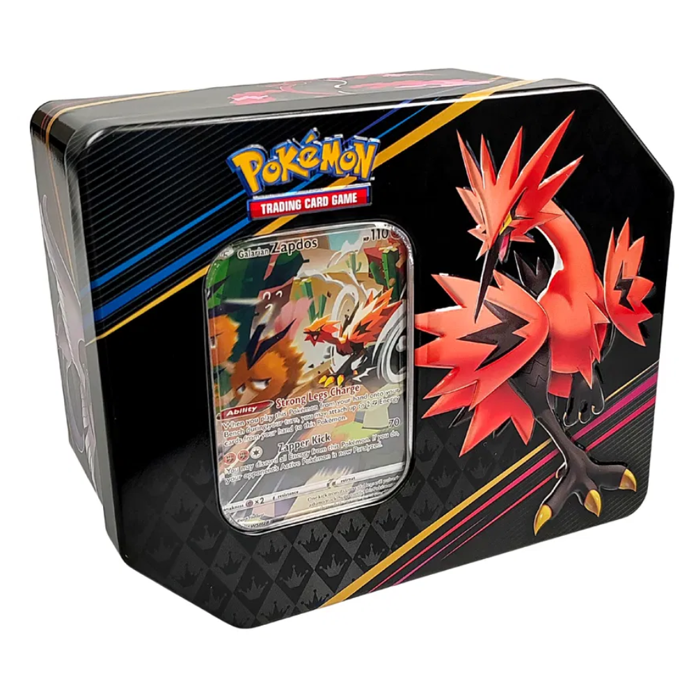 Med Pokémon TCG: Sword & Shield – Crown Zenith Premium Art Galarian Zapdos Big Tin (ENG) får du en exklusiv full art promo med Galarian Zapdos, tillsammans med 5 booster packs från den populära Crown Zenith-expansionen. En idealisk produkt för både spelare och samlare som vill förstärka sina lekar eller lägga till en sällsynt promo i samlingen.