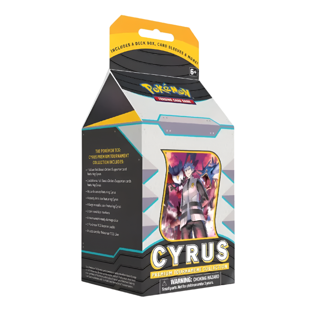 Ta kontroll över spelet med Cyrus Premium Tournament Collection – en exklusiv samlar- och turneringslåda för Pokémon TCG-tränare som gillar att dominera matchen med taktik och kraft. Perfekt för både samlare och spelare!