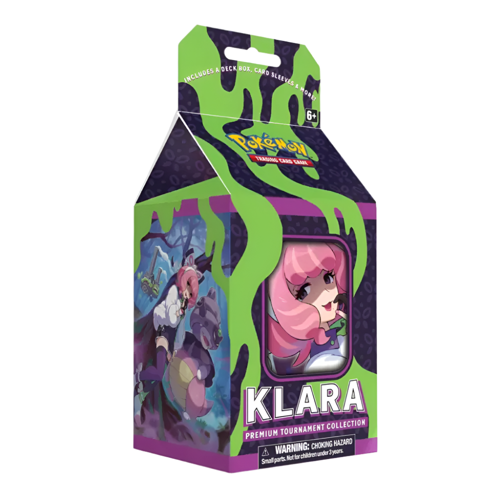 Gör entré som en stjärna med Klara Premium Tournament Collection – ett exklusivt set som kombinerar stil, strategi och kraft i Pokémon TCG. Med en färgstark design och ett av spelets mest användbara supporterkort är detta ett måste för både samlare och tävlingsspelare!