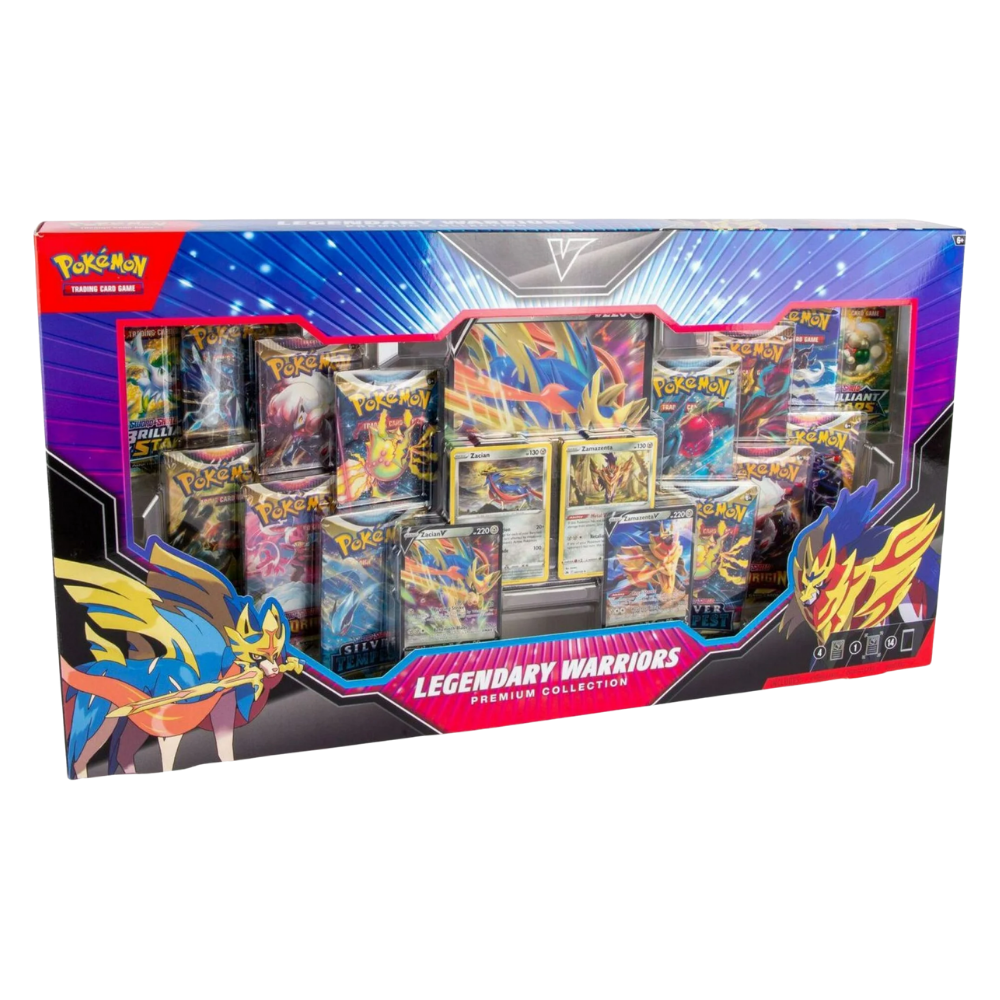 Förena krafterna med de legendariska hjältarna från Galar – Zacian och Zamazenta! Denna exklusiva premiumkollektion bjuder på både kraftfulla foilkort för strid och en imponerande oversize-kort för samlarhyllan. Med hela 14 booster packs att öppna väntar timmar av spänning för både spelare och samlare.