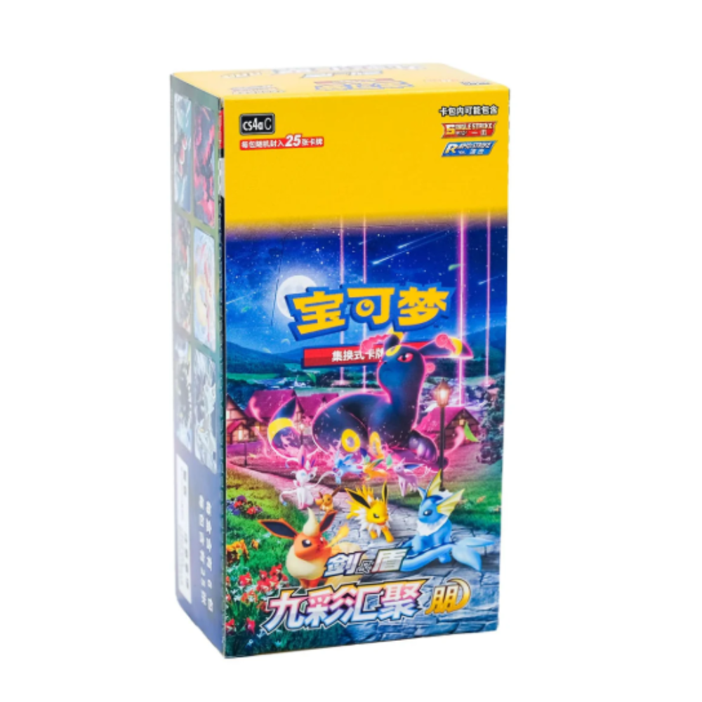 Utforska världen av Eevee och dess utvecklingar med Pokémon TCG Nine Colors Gathering Eevee Heroes CS4a Jumbo Booster Box! Denna premium-boosterbox innehåller 6 jumbo booster packs, där varje pack har 25 slumpmässiga kort. En fantastisk möjlighet att få sällsynta och kraftfulla Pokémon som Vaporeon, Jolteon, Flareon, Espeon, Umbreon, Leafeon, Glaceon och Sylveon. Perfekt för både samlare och tävlingsspelare som vill bygga starka kortlekar i Pokémon Trading Card Game.