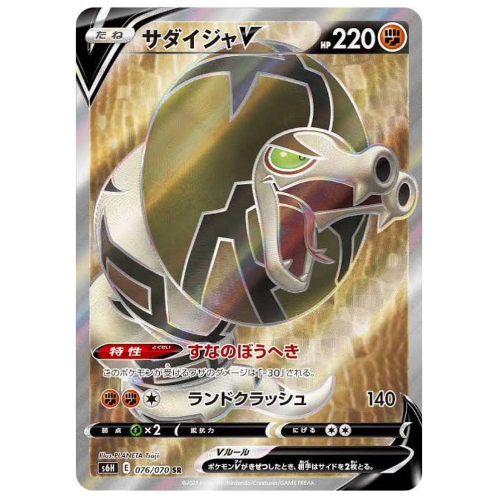 Fånga kraften hos Sandaconda V med detta Secret Rare-kort SR från Silver Lance-setet! Detta japanska kort (S6H 076/070) visar Sandaconda, den Ground-type Pokémon med en kraftfull och majestätisk design. Kortet är i Nära Mint-skick och erbjuder både visuell och spelmässig fördel.