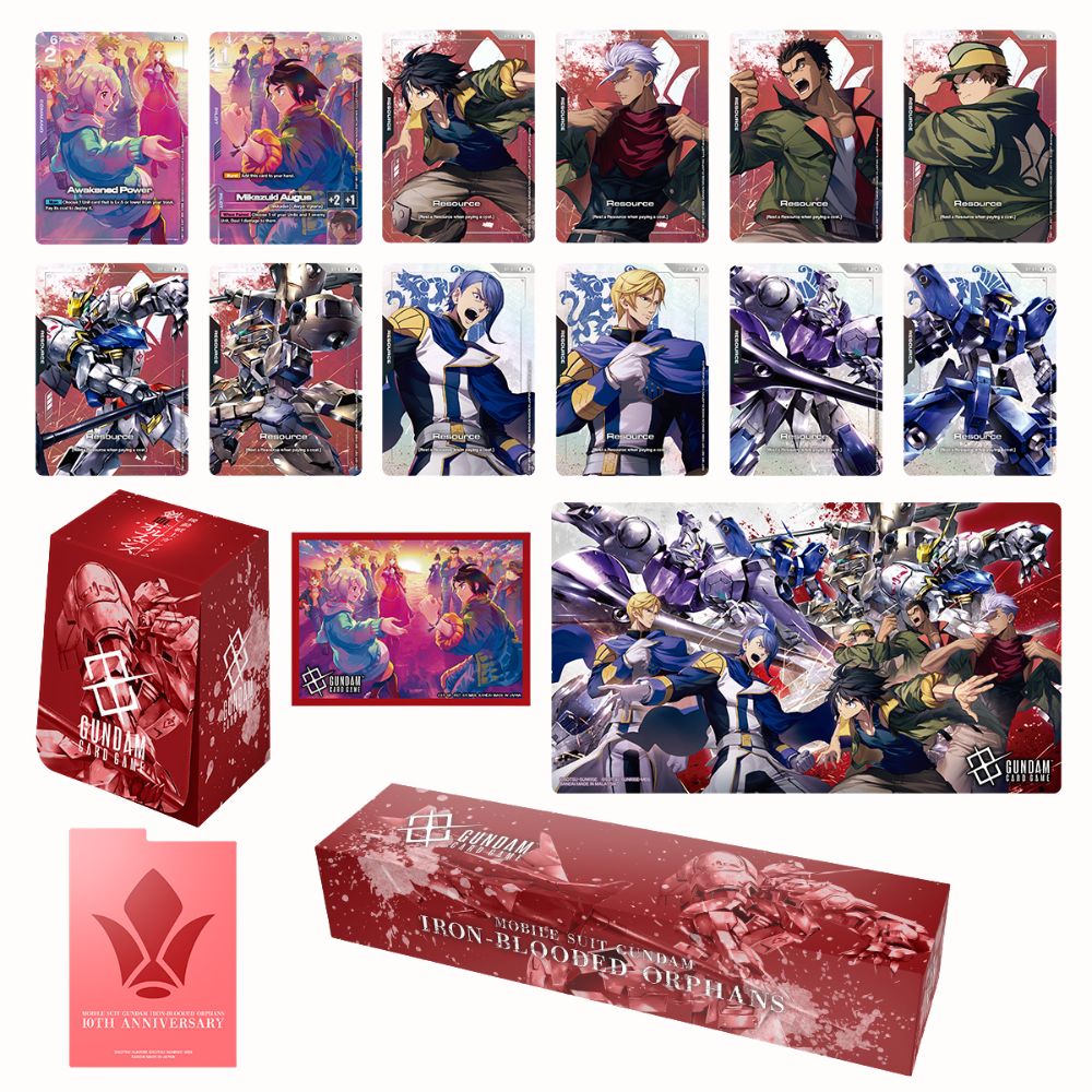 Immerse yourself in the Iron-Blooded Orphans universe with this exclusive Premium Accessory Set (PB02), designed for fans of the series and collectors of Gundam card games. The set includes a high-quality playmat, storage box, card case, sleeves, and several unique cards – perfect for both gameplay and display. Everything is designed with official Gundam Iron-Blooded Orphans themes for an authentic experience.