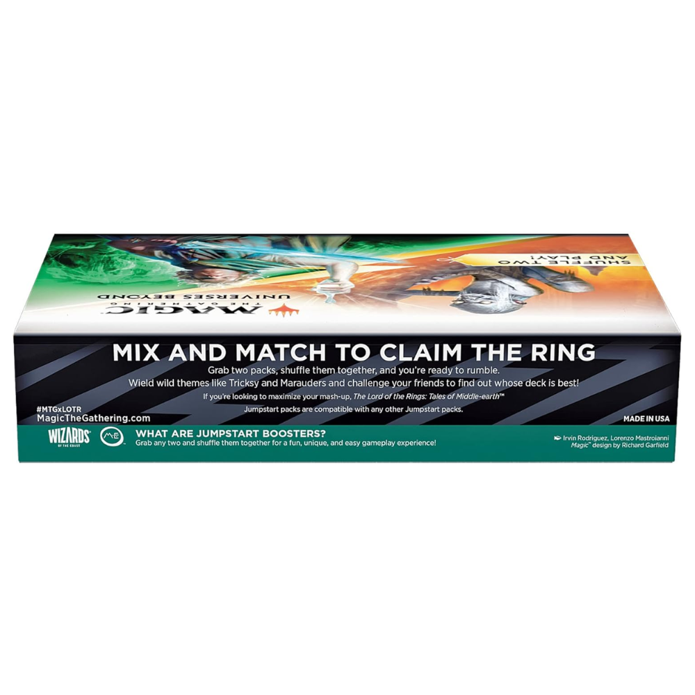 Upplev Sagan om Ringen som aldrig förr! Magic: The Gathering förenas med Middle-earth i detta Jumpstart Booster Display, där du snabbt och enkelt kan hoppa rakt in i spelet. Varje booster har ett unikt tema och är designad för att blandas direkt med en annan Jumpstart–pack — perfekt för snabba matcher, nybörjare eller spelare som vill testa nya kombinationer. Med ikoniska karaktärer, vackra illustrationer och specialdesignade kort fångar detta set hela magin från Middle-earth.