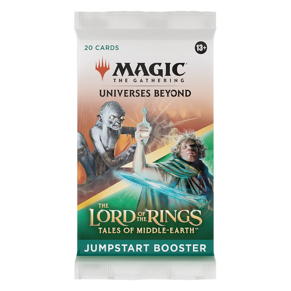 Jump right into Middle-earth! This Jumpstart booster combines Magic's fast-paced, easy-to-play Jumpstart format with the epic story of The Lord of the Rings: Tales of Middle-earth . Each pack contains 20 cards—either from the core set or specially designed for LOTR Jumpstart—plus a theme card that reveals which theme you're playing. Open two packs, shuffle them together, and you're ready to play right away!