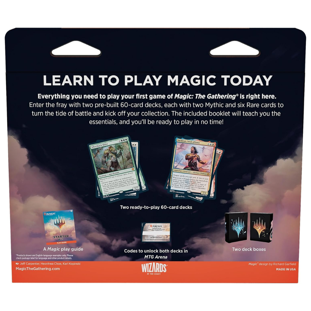 The Magic: The Gathering 2023 Starter Kit is the perfect introduction to MTG for new players. With two pre-built decks, you can start playing right away – either against a friend at the table or online via MTG Arena. Designed to teach the game step-by-step, the kit also makes a great gift.