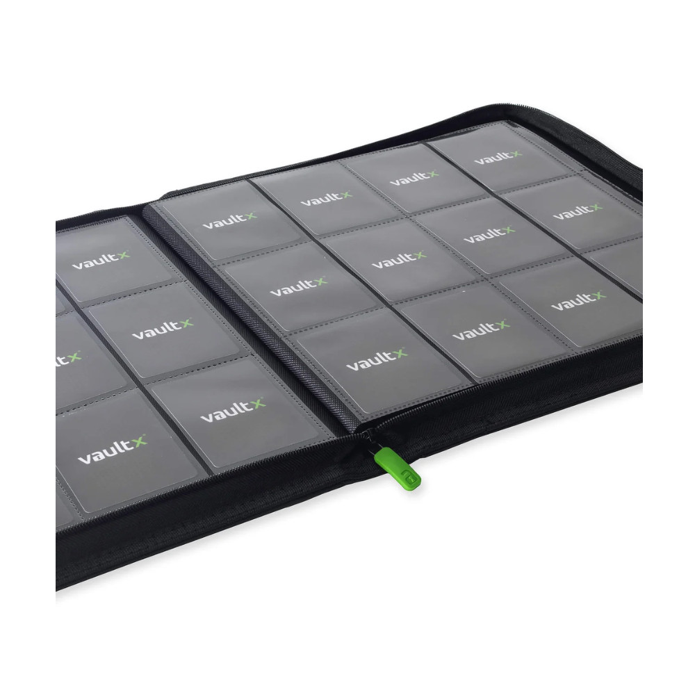 Vault X: EXO-TEC Zip Binder – 12 Pockets (Black) (480 Cards) is a premium zip-up collector's binder designed for collectors who need maximum capacity without compromising on protection and quality. With 12 pockets per side and a total of 20 pages, this binder holds up to 480 cards. It is equipped with extra stiff, padded front and back sides in non-slip and water-resistant Exo-Tec® material that effectively protects your collection from bending, dust and moisture.