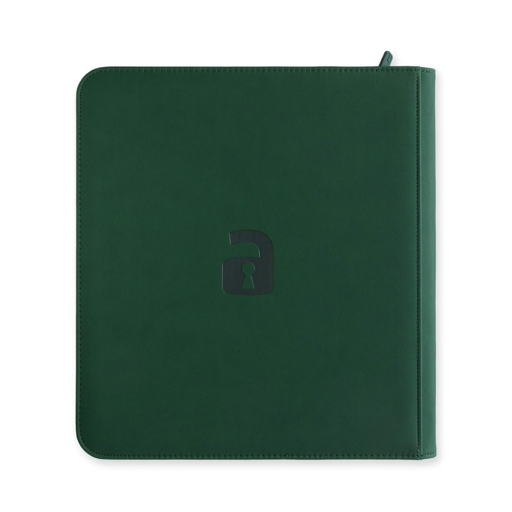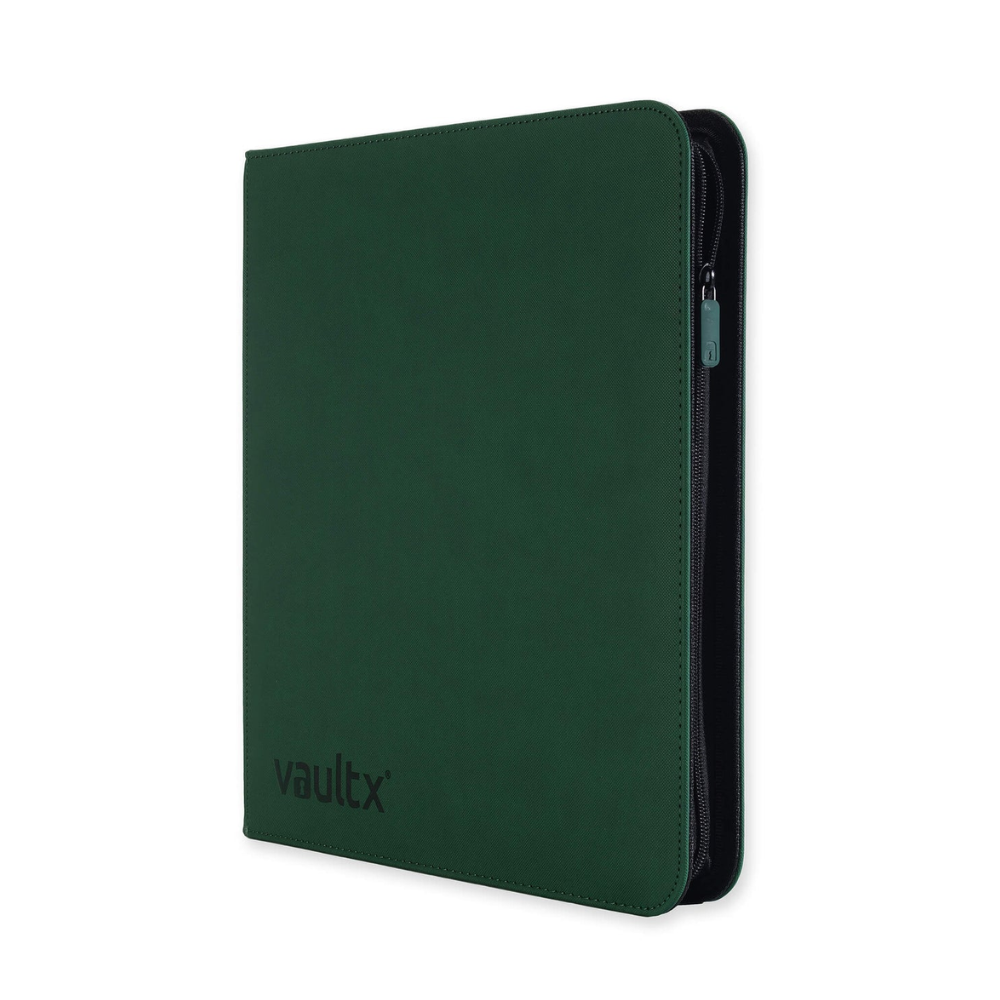 The Vault X EXO-TEC Zip Binder – 12 Pockets (Forest Green) is a premium zip-up collector's binder designed for collectors with larger TCG collections. With 12 pockets per page and a total of 20 pages, this binder holds up to 480 cards, making it perfect for Pokémon, One Piece, Yu-Gi-Oh!, MTG and other trading card games. The binder features extra stiff and padded front and back pages in non-slip and water-resistant Exo-Tec® material that protects cards from bending, scratches, dust and moisture. Side-loading pockets keep cards secure, and a full-length zipper provides extra protection during transport and storage. The elegant green color gives a stylish and fresh look.