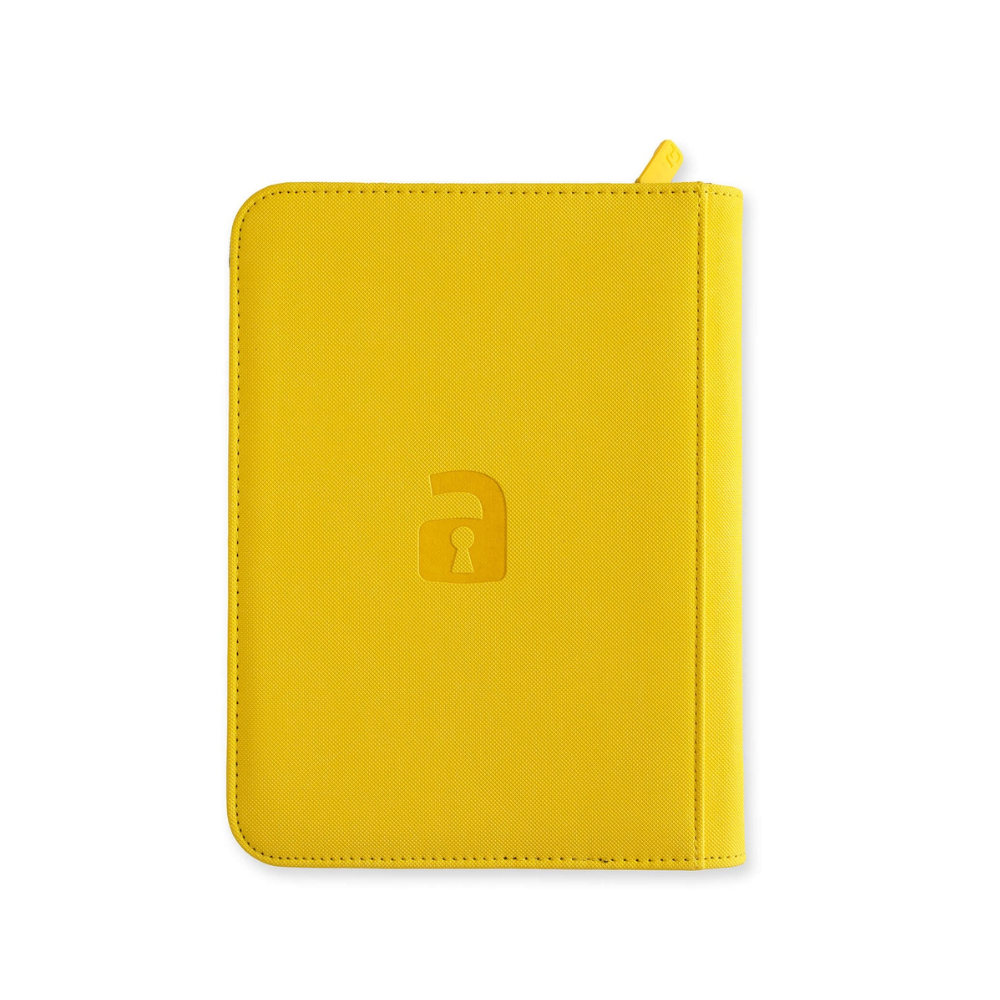Vault X: EXO-TEC Zip Binder – 4 Pockets (Sunrise Yellow) is a compact and premium zip-up collector's binder that offers maximum protection in a convenient format. With 4 pockets per page and 20 pages in total , the binder holds up to 160 trading cards , perfect for smaller collections or for those who want to sort cards by set, suit or game.