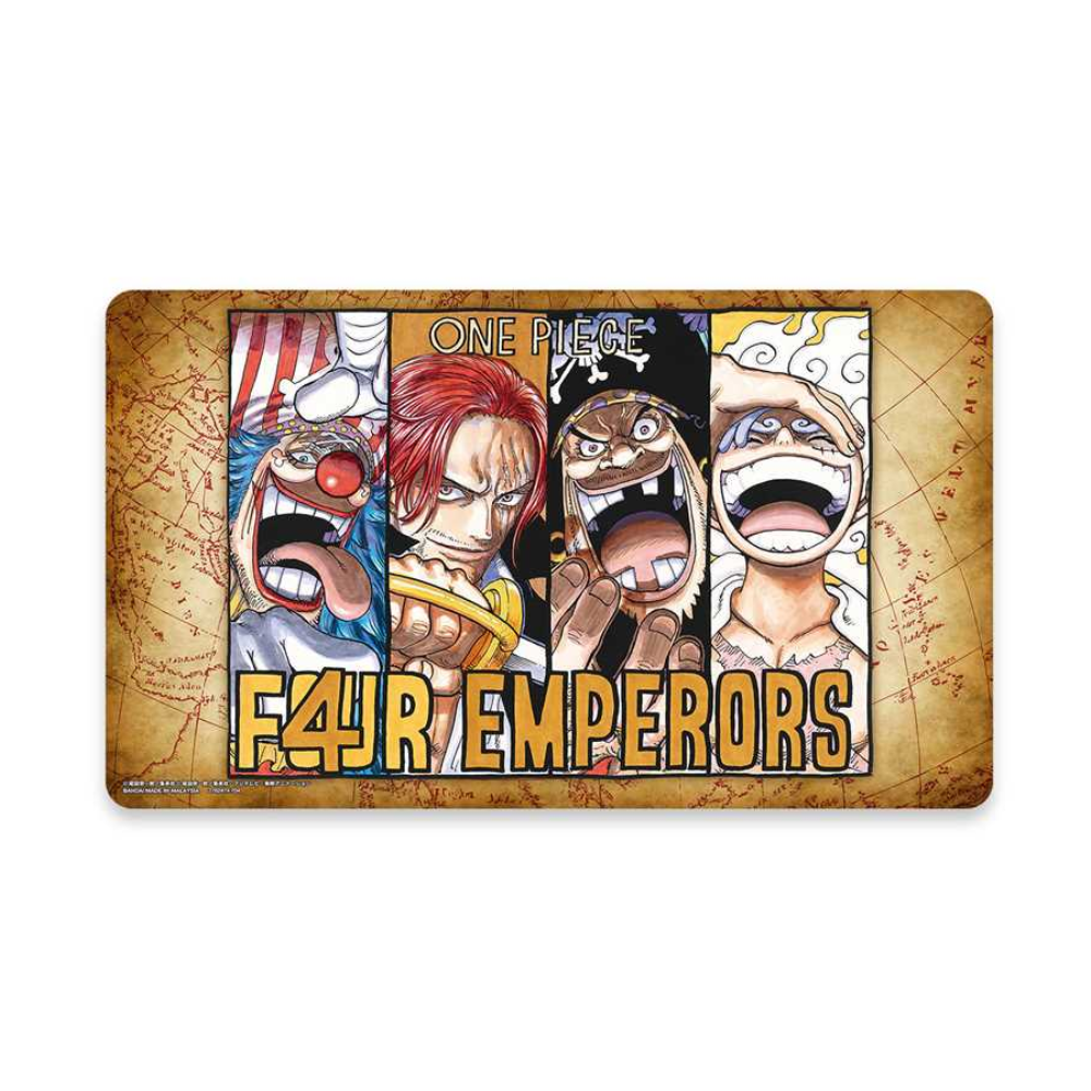 The second official playmat with original artwork is here! Enjoy the ONE PIECE CARD GAME even more with this exclusive Limited Edition playmat adorned with the new Four Emperors. A perfect combination of style, function and collectible value for players and fans of One Piece alike.