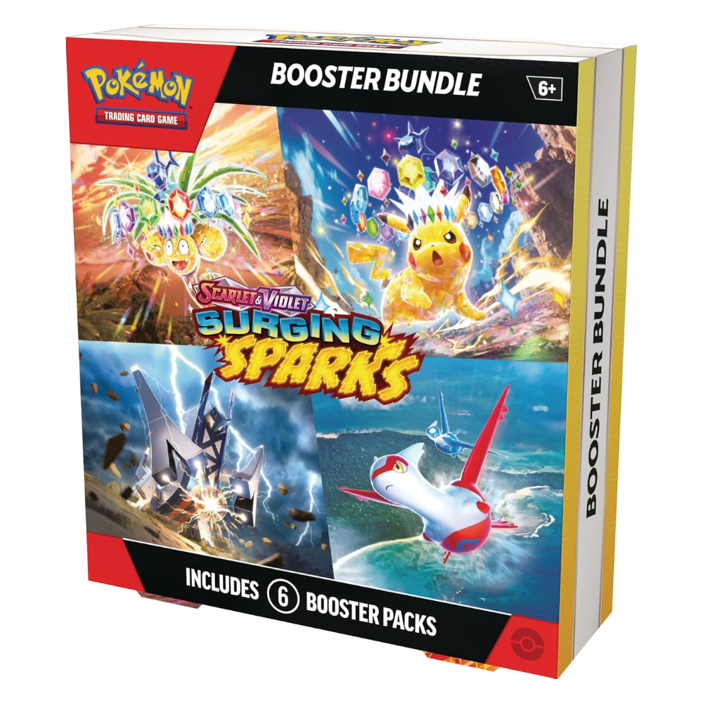 Maximize your collection with the Surging Sparks Booster Bundle – US Version from the Pokémon Scarlet & Violet series. This bundle contains 6 US version booster packs , each pack containing 10 cards and 1 Basic Energy, giving players and collectors the chance to draw rare and powerful Pokémon cards. Perfect for deck building, collecting, or as a gift for Pokémon fans.