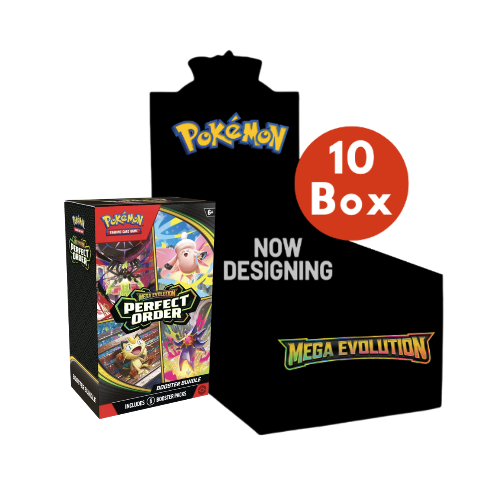 The Pokémon Mega Evolution Perfect Order Booster Bundle Case contains 10 factory-sealed Booster Bundles from the Perfect Order expansion. This sealed case is a great choice for collectors, retailers, and players who want more booster packs in their original packaging. The expansion focuses on Mega Evolution and offers powerful new Pokémon, trainer cards, and strategies for the Pokémon TCG.