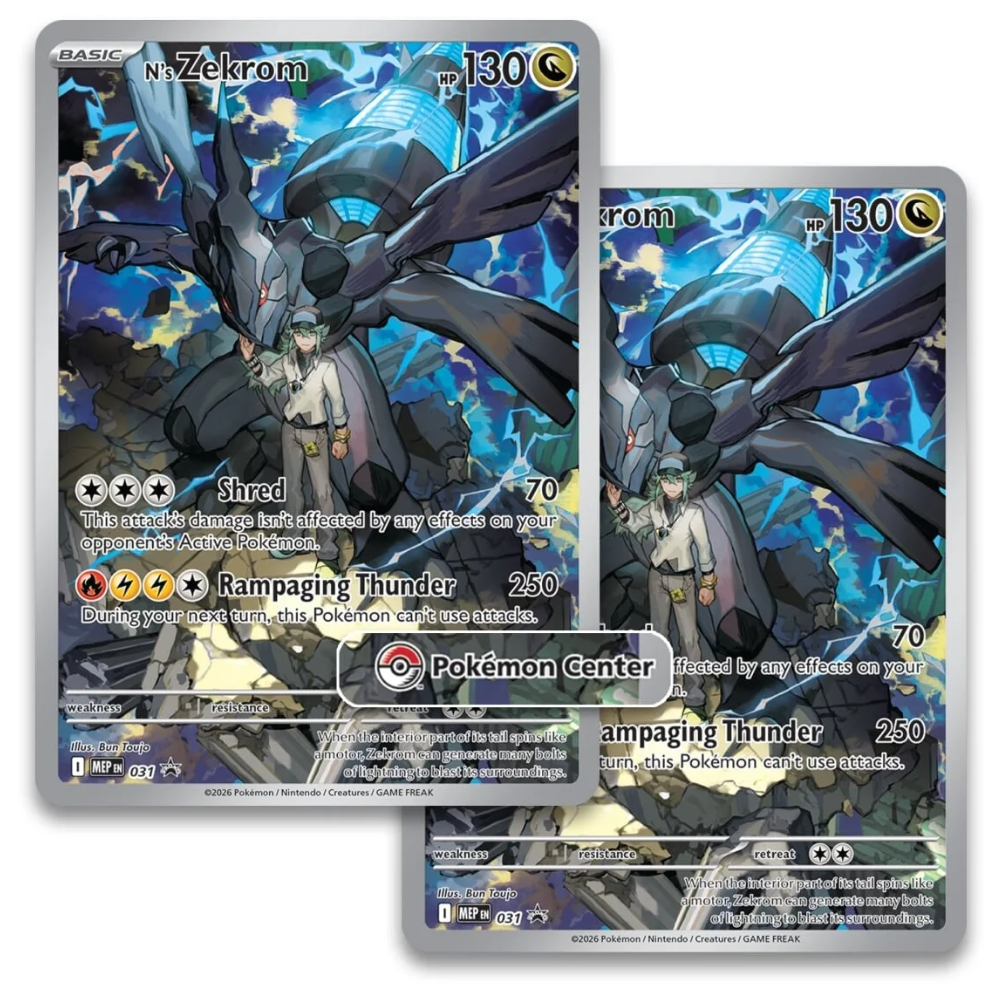 Full-art foil promo card featuring N's Zekrom and Pokémon Center logo