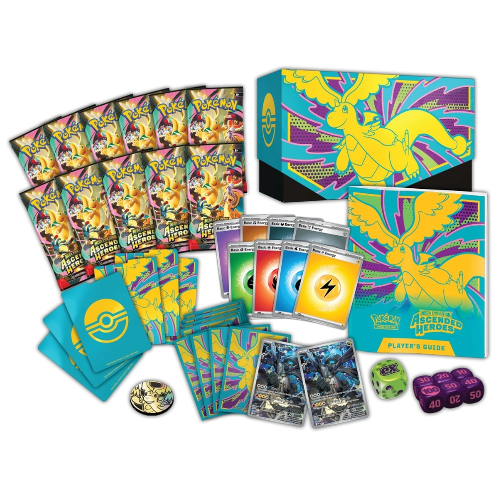 Take your Pokémon TCG experience to the next level with this Pokémon Center Elite Trainer Box from the Mega Evolution—Ascended Heroes expansion. Follow Mega Dragonite ex and a host of star Pokémon into battle, including specially illustrated cards showcasing their most powerful attacks. Perfect for both play and collection.