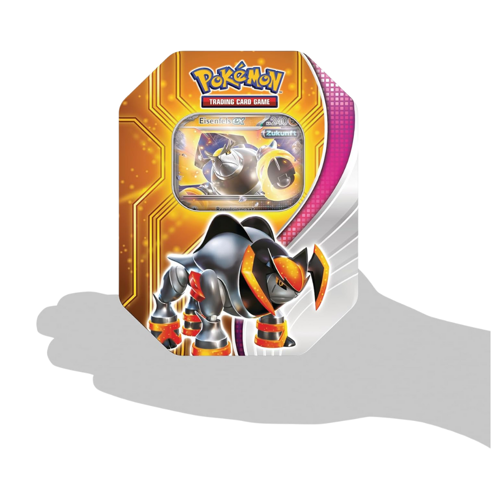 The power of the future arrives with Eisenfels's ex! This Paradox Destinies tin contains a holographic promo card and four Pokémon TCG booster packs. The beautifully illustrated tin is also perfect for storing and protecting your favorite cards.