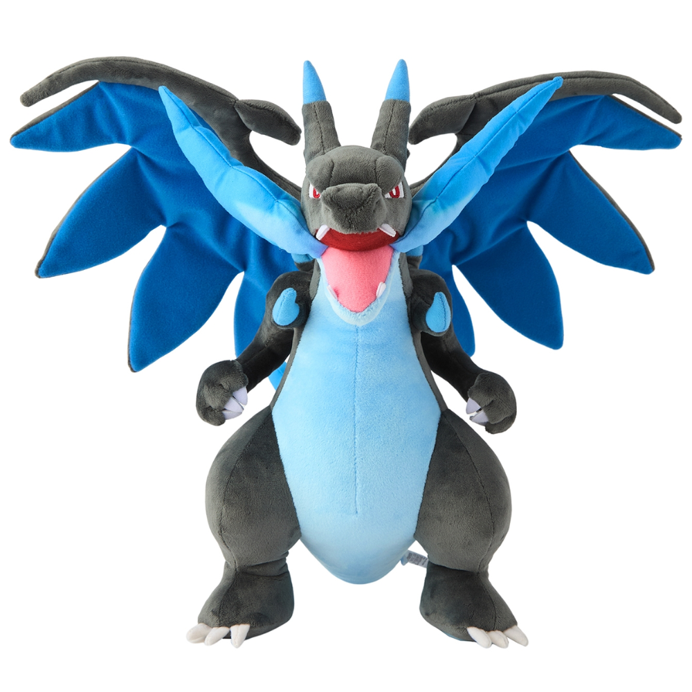 Mega Charizard X represents Charizard's most powerful dragon form and is a fan favorite among trainers worldwide. The detail and size make this plush an impressive centerpiece for your Pokémon collection.
