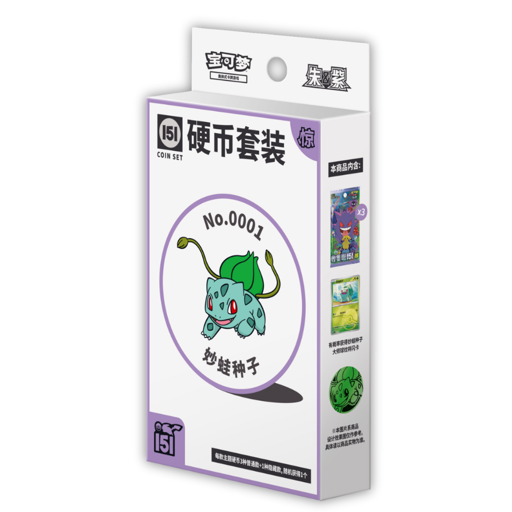 All coins are colored differently depending on the Pokémon type: Grass , Psychic , or Dark , reflecting the increased occurrences in the Collect 151: Surprise set.