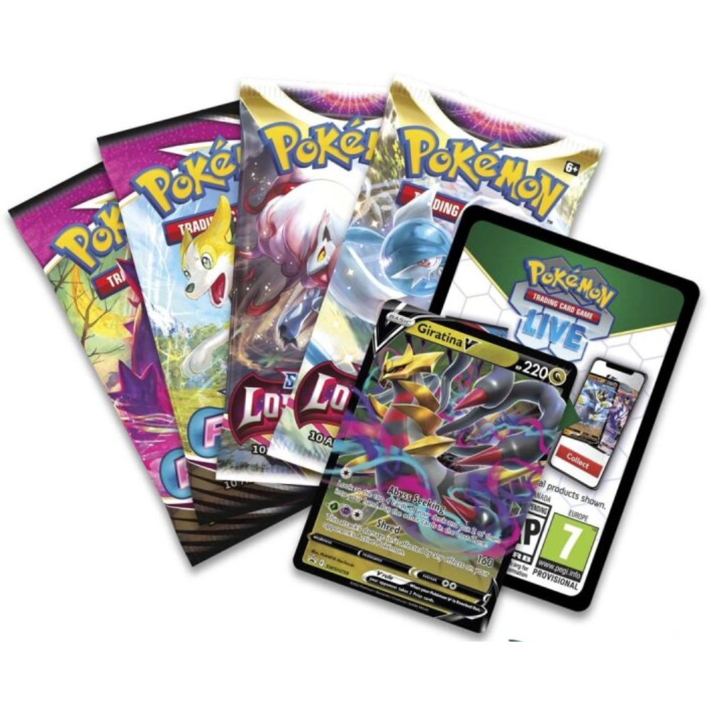 The Pokémon Hidden Potential Tin lets you discover the impressive powers of Giratina V. This stylish tin box contains one of the powerful V-cards, four booster packs, and a code card – a fantastic set for dedicated Pokémon fans.