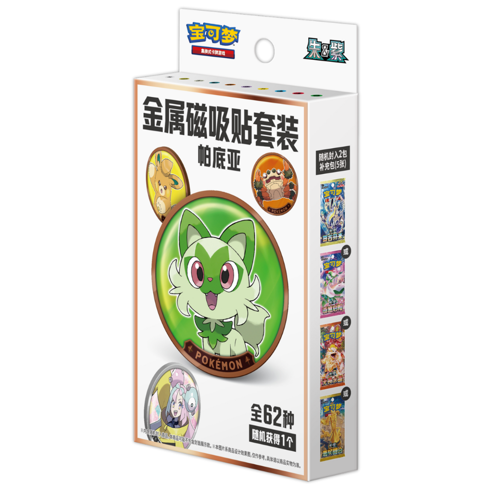 Experience a shiny new collectible series with Pokémon: Metal Magnetic Badge Set – Paldea (CH) ! This exclusive set includes 1 Paldea-themed magnetic badge, 2 booster packs from the Scarlet & Violet series (5 cards per pack), and 1 raffle ticket for the "Kishū's Long Vacation" promotion. A must-have for all trainers who love style, collectibles, and surprises!