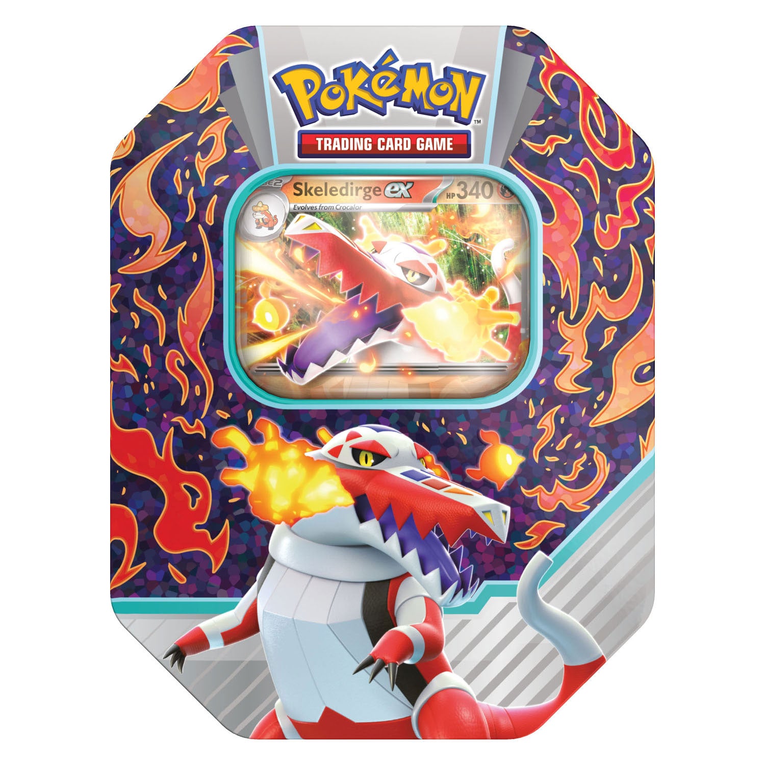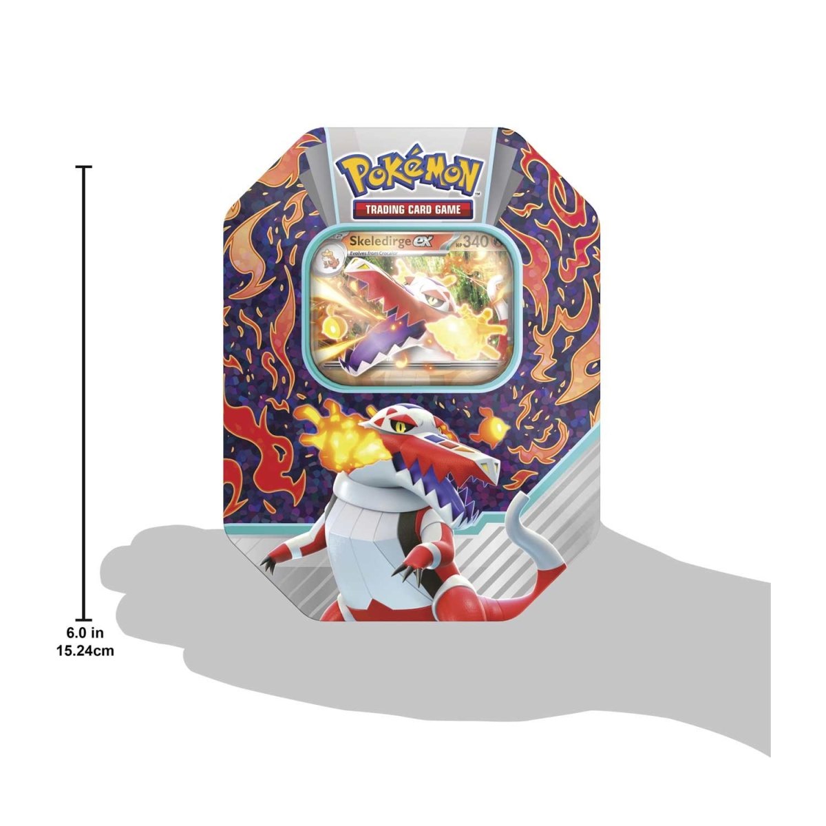 Skeledirge ex, the fiery and powerful Paldea Pokémon, stands ready to be your strongest partner on the battlefield. In this Paldea Partners Tin, you'll get Skeledirge ex and more exciting booster packs to build your ultimate deck.