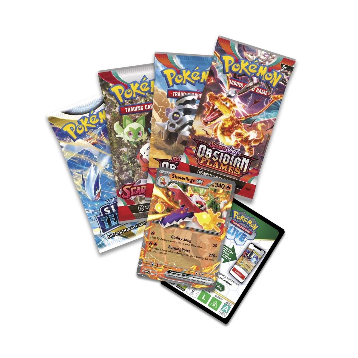 Contents of Pokémon Paldea Partners Tin - Skeledirge ex: