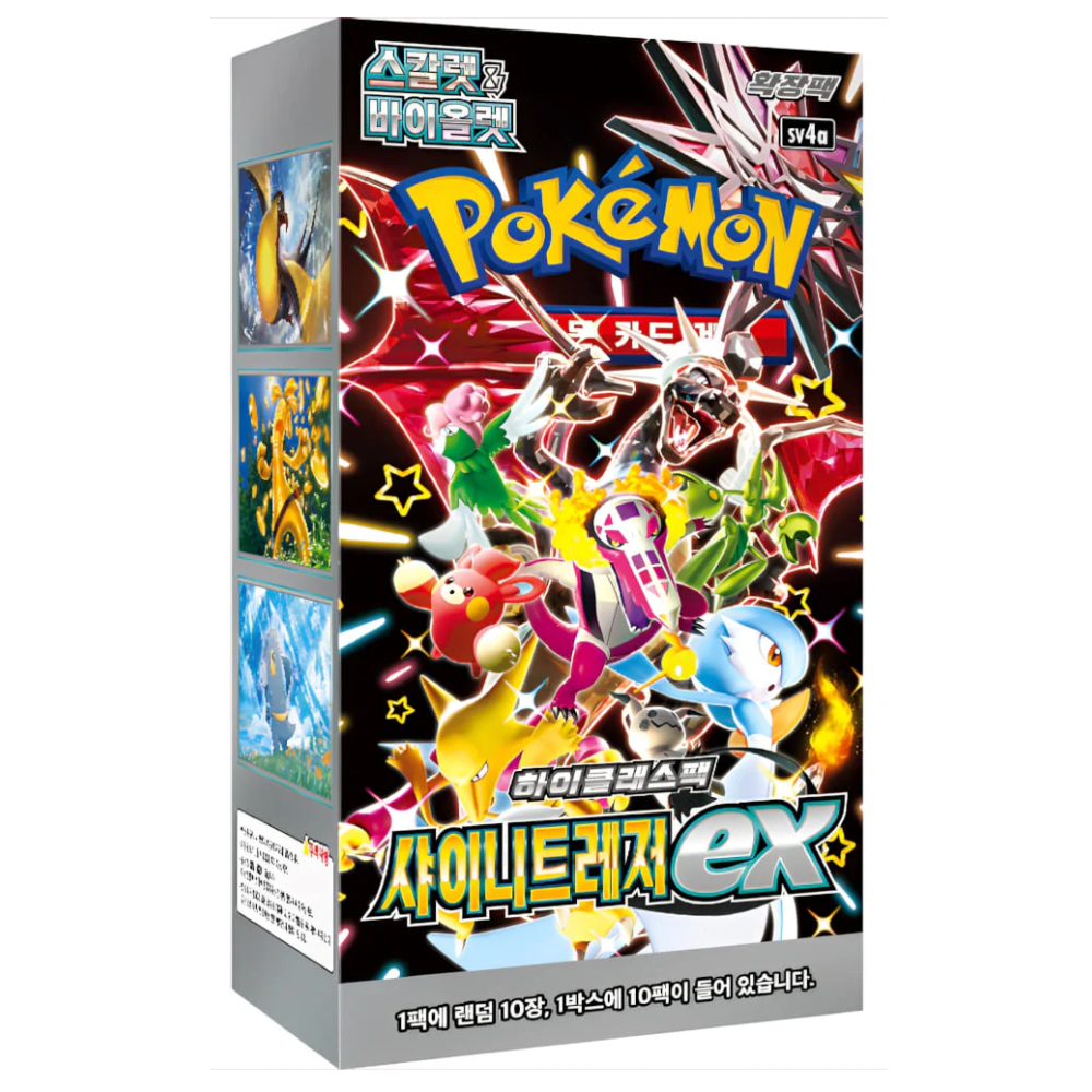 The treasure you don't want to miss! For true collectors and trainers, the Pokémon Scarlet & Violet: Shiny Treasure EX SV4a Booster Box (Korean) offers an entire box filled with the chance to draw rare Shiny Pokémon and exclusive cards.