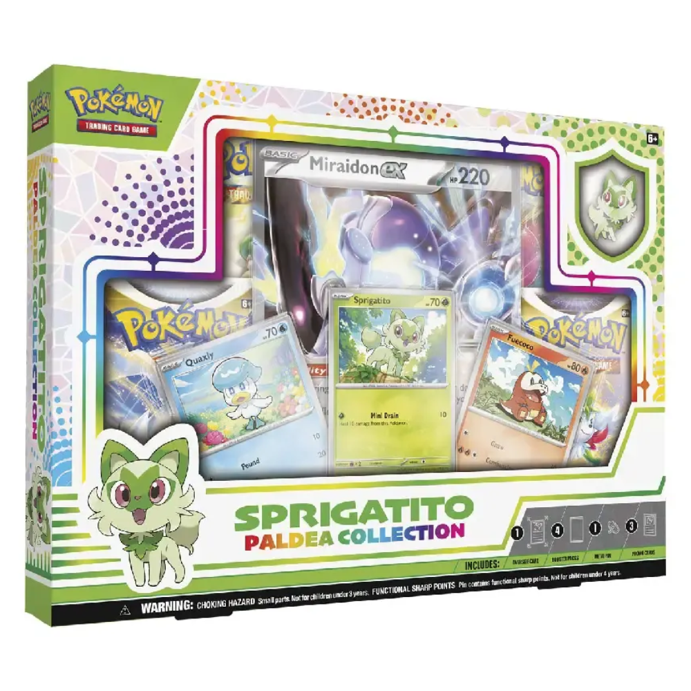 Explore the Paldea region alongside the graceful grass starter Sprigatito ! This beautiful collector's box from Pokémon Scarlet & Violet contains exclusive promo cards, booster packs, and a collector's pin - a must-have for new and experienced trainers alike.