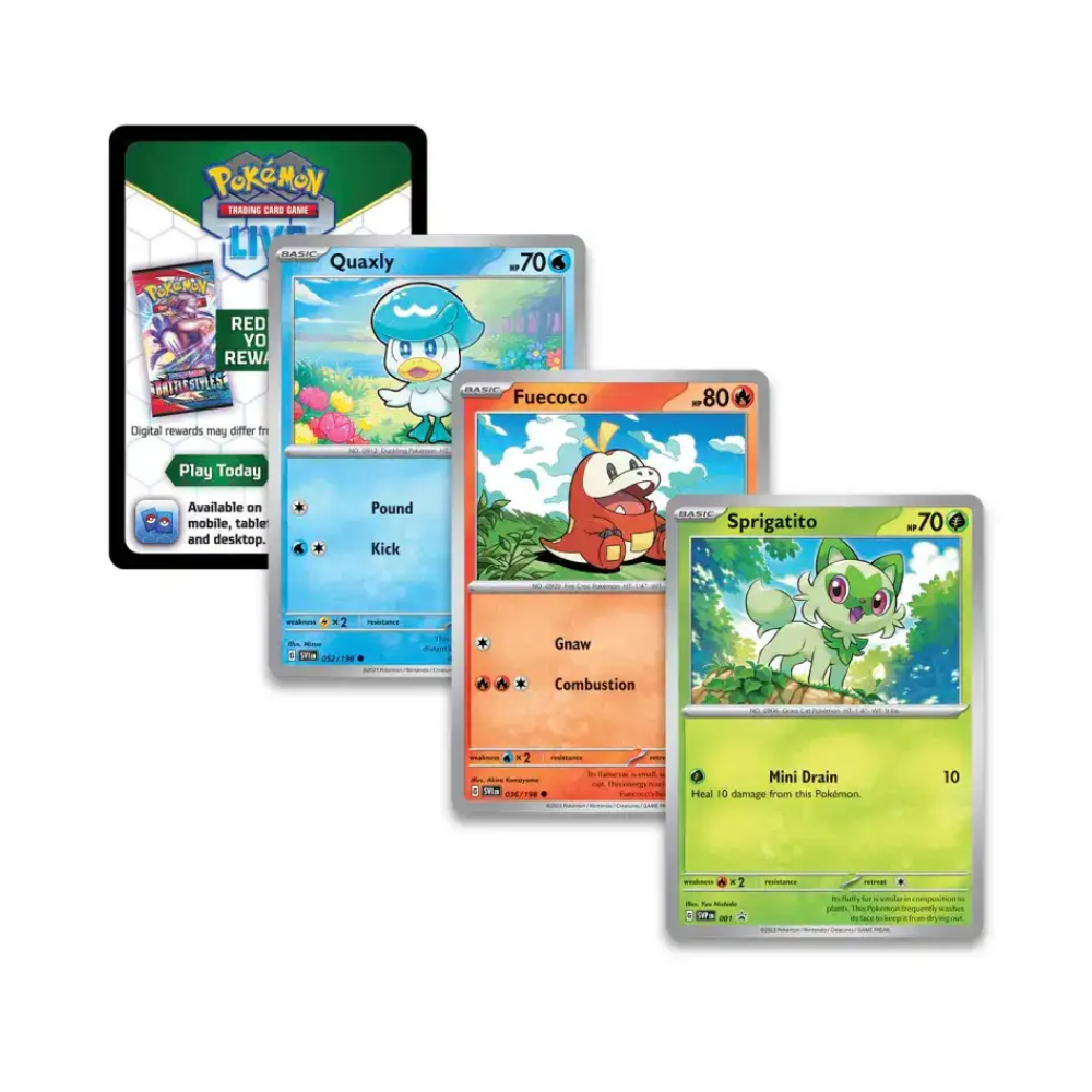 3 foil promo cards featuring Sprigatito, Fuecoco and Quaxly