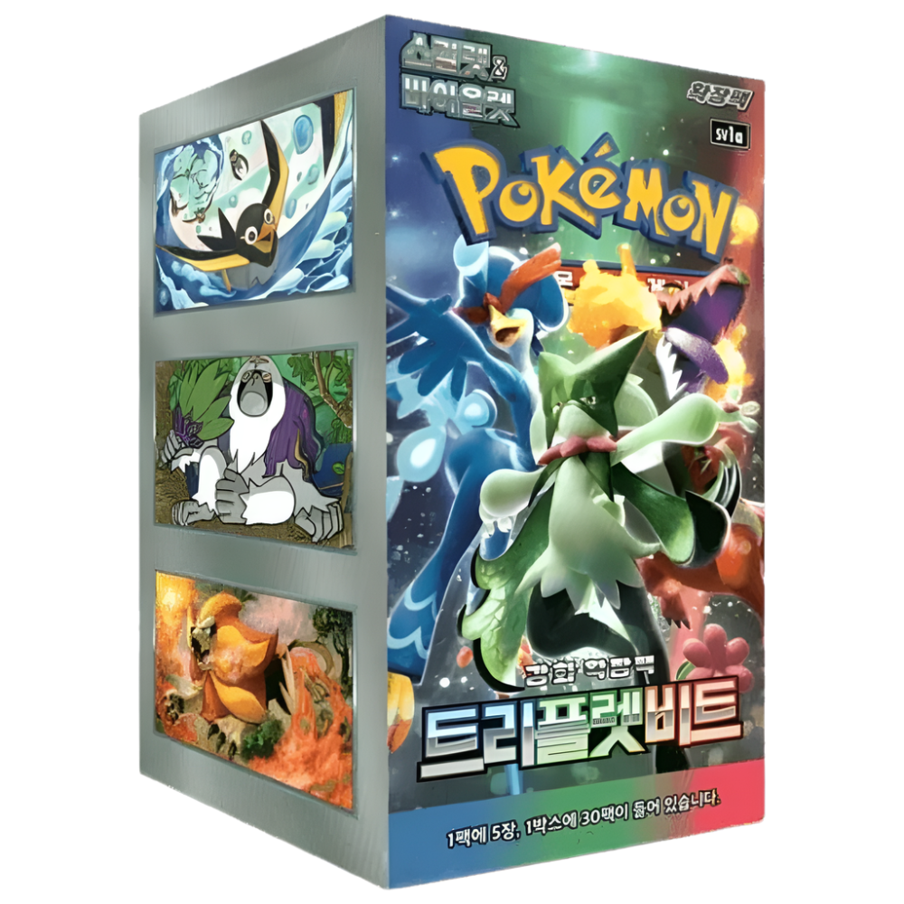 Max out your Scarlet & Violet collection! Explore Paldea's powerful Pokémon with the Pokémon Scarlet & Violet: Triple Beat SV1a Booster Box (Korean Version) - the perfect box for collectors and players looking to open tons of boosters and hunt down those coveted EX cards!