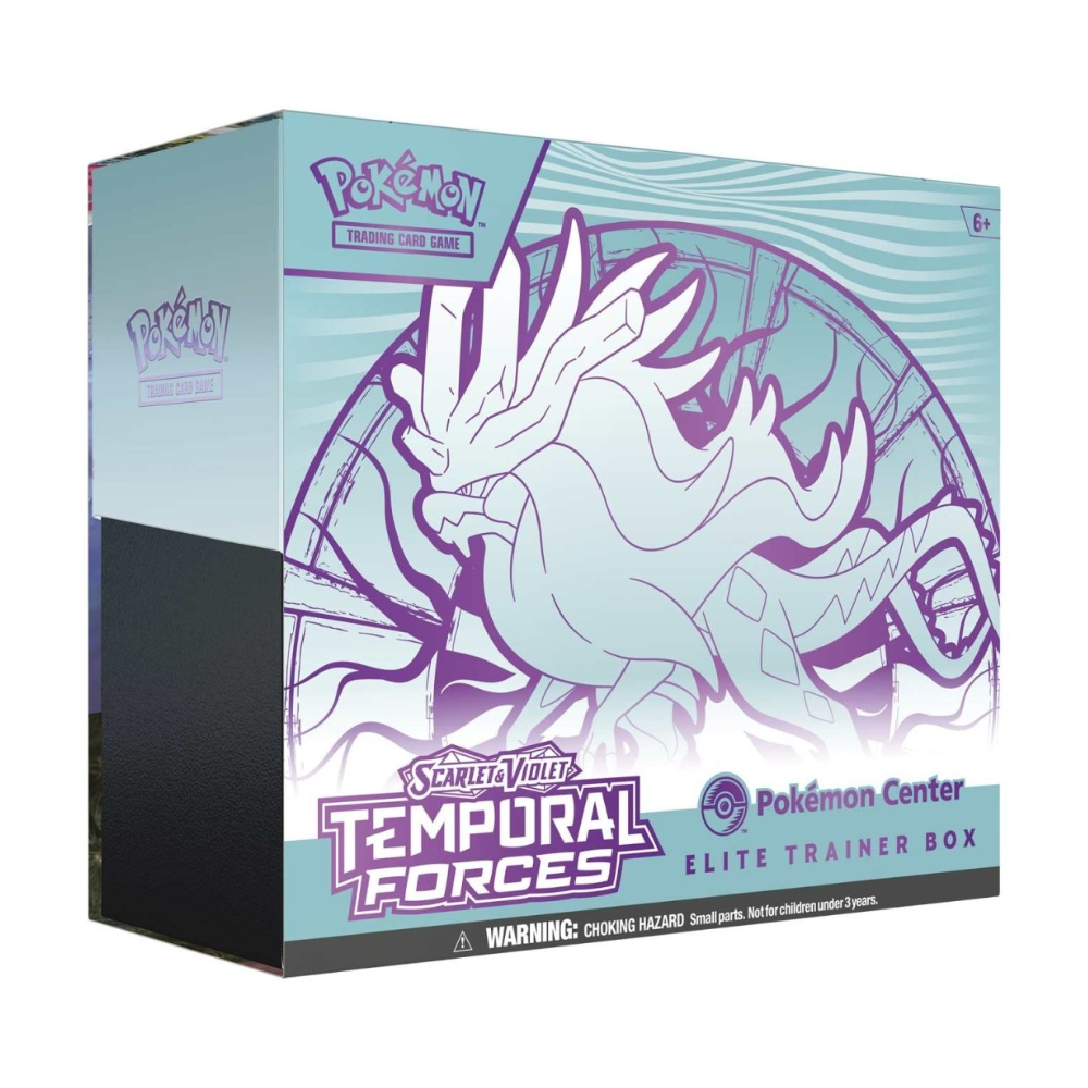 Prepare for an epic battle where ancient beasts meet cyber warriors of the future ! The Temporal Forces expansion introduces powerful Ancient and Future Pokémon exes such as Walking Wake exes, Iron Leaves exes . With this Pokémon Center Elite Trainer Box, you'll get exclusive promo cards, more booster packs, and premium accessories to take your collection to new heights!