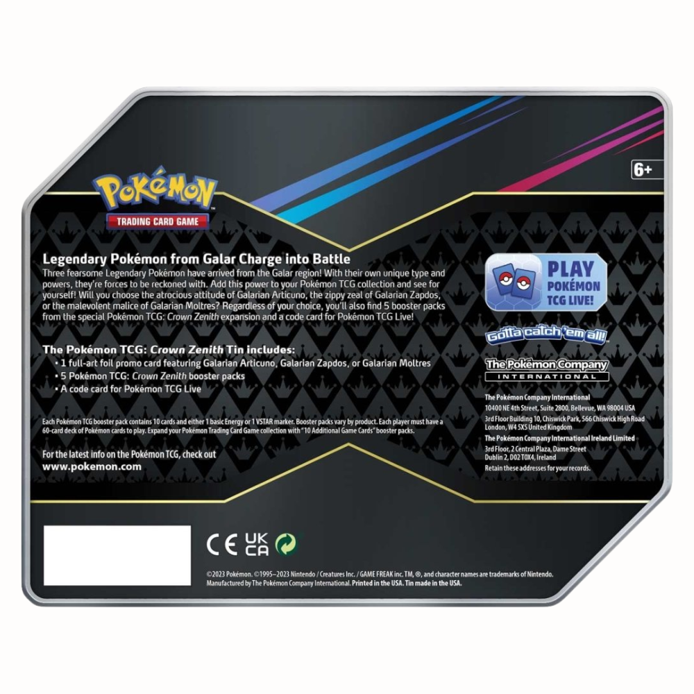 The legendary birds of the Galar region have arrived! With unique types and powerful attacks, they're ready to dominate the battle. Galarian Moltres brings with it a dark and fiery power, making it one of the most sought-after Pokémon in the Crown Zenith series. This exclusive Premium Art Tin is both a collector's favorite and a powerful addition to your TCG deck.