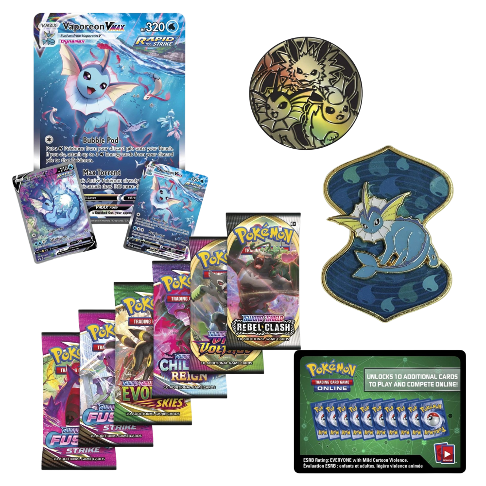 • 1 etched oversize card featuring Vaporeon VMAX – perfect for display