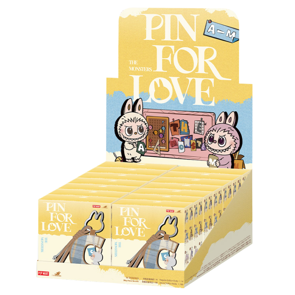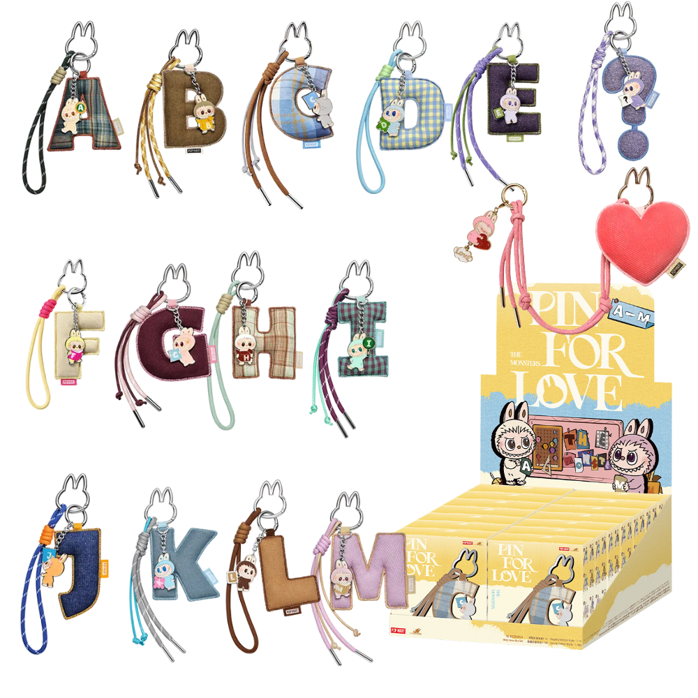 POP MART presents Labubu The Monsters Pin for Love Letter Series (A–M) in an exclusive sealed gift case containing 14 boxes . Each figure combines Labubu's iconic expressions with a uniquely designed love letter. This complete case is perfect for collectors who want to maximize their chances of getting the entire A–M series without buying boxes individually.