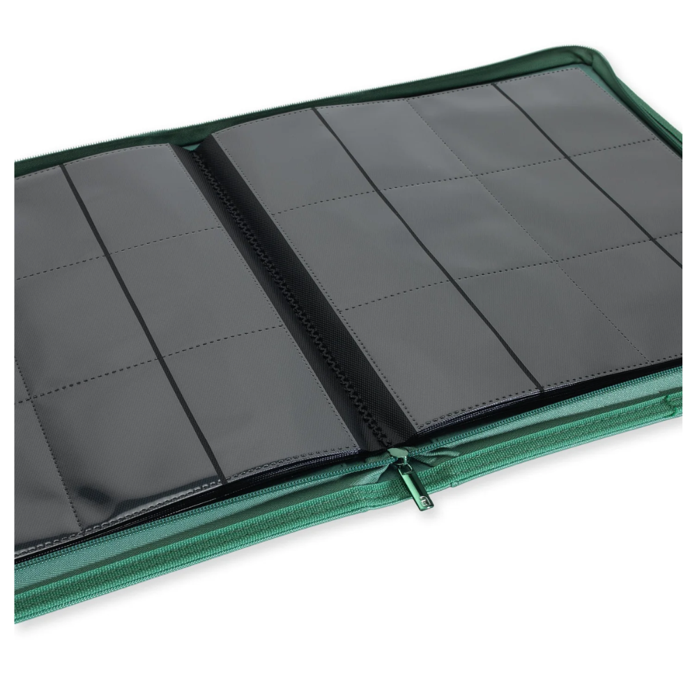 Vault X: EXO-TEC Metallic – 12 Pockets (Green) (480 Cards) is a high-capacity premium zip-up collector's binder, designed to keep your cards safe, organized, and ready to use. The binder is made with Vault X's signature Exo-Tec® material, which is padded, durable, and water-resistant to provide maximum protection for your collection.