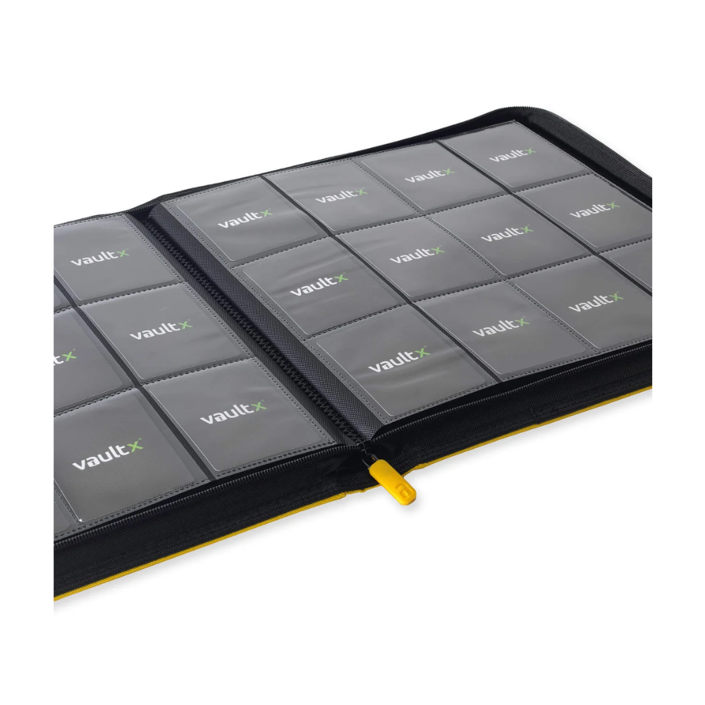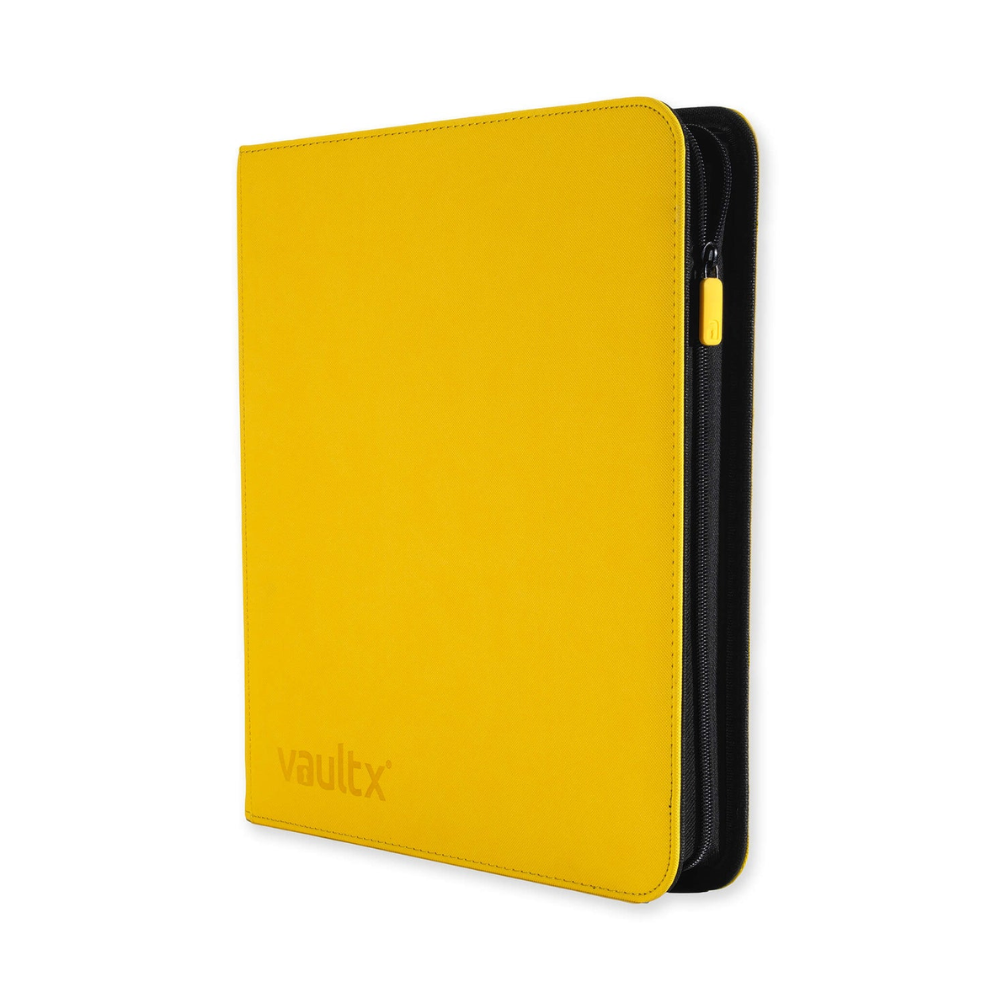 Vault X: EXO-TEC Zip Binder – 12 Pockets XL (Sunrise Yellow) is a premium zip-up collector's binder for serious card collectors who want maximum capacity without compromising on protection and quality . With 12 pockets per page and a total of 26 pages, this XL binder holds up to 624 trading cards .