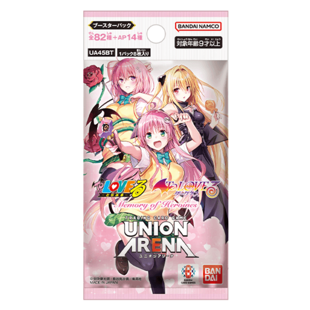 Discover the charming and chaotic world of To LOVEru in the Union Arena card game with this Japanese UA45BT Booster Pack ! Each pack contains 8 random cards featuring characters and scenes from the Memory of Heroines series - perfect for those looking to complete their collection or build a new deck!
